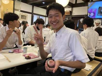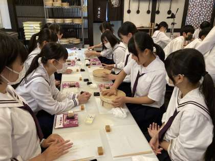 和菓子作り体験です。 職人さんの匠の技に感動です。 1つ1つ丁寧に作るので高級な上品なものだと分かりました。