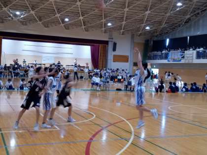女子バスケットボールは、4チームのリーグ戦。第一試合、西中に勝利し、勢いそのままに、第2試合、小野中戦にも勝ち、2勝。明日8時半から東中との決戦です。