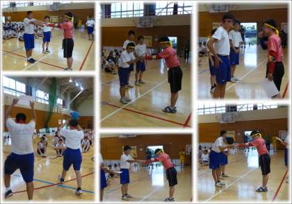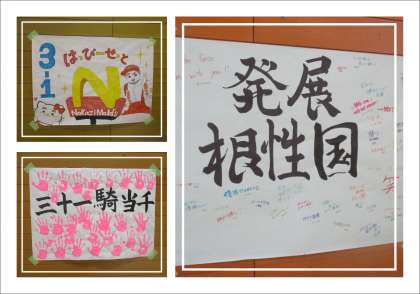 表彰式と体育館に貼られた各クラスの応援旗を紹介します。