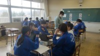 今朝は雨模様、体育館で駅伝大会の最終調整を行いました。