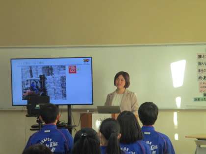 山川さんは、本校の卒業生でもあり、今年度から学校運営協議会ぽ☆ら☆り☆すの委員として、日頃から北一貫校のためにご尽力いただいている方です。ご家庭にも配付している「ぽ☆ら☆り☆す通信」の作成には中心となって関わっていただいております。