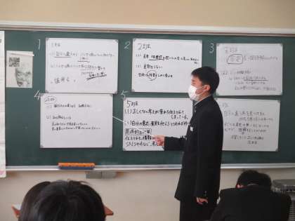 後半は、生徒はグループになって、偏見・差別をなくすためには、どうしたらよいか、本音で話し合い、全体で交流しました。