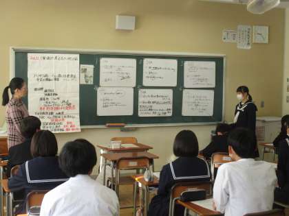 病気による人権侵害といえる「ハンセン病患者」の差別問題を素材に、生徒一人ひとりが「ハンセン病」の正しい知識と歴史を学び、病気による人権侵害について考えました。
