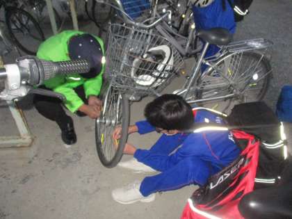 12月10日(火) 交通事故防止街頭指導(安全指導) 公開日 2024/12/10 更新日 2024/12/10 できごと 12月1日(日)から10日(火)までの間、冬の県民交通安全運動が実施されているところですが、今日の午後、その一環として、藤岡交通安全協会藤岡市交通対策協議会、藤岡警察の方々が来校し、生徒の自転車の車輪スポークに反射材を取り付けていただきました。ありがとうございました。 夕方は暗くなるのも早くなっています。より一層の交通安全意識を高めて、交通事故ゼロを目指します。