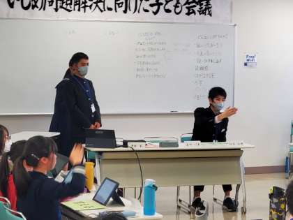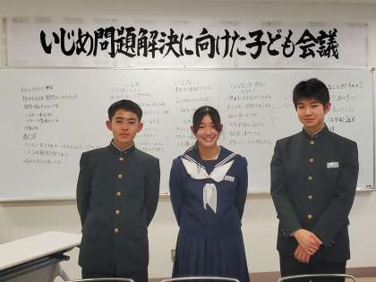 1月21日(火) いじめ問題解決に向けた子ども会議 公開日 2025/01/22 更新日 2025/01/22 できごと この日、教育庁舎において市内小中学校の代表児童生徒が集まり、いじめ問題解決に向けた子ども会議が開催されました。全体協議の議題は「笑顔、やる気、希望いっぱいの学校づくりに向け私たちができること」について活発な協議がなされ、その後、校区ごとに別れてどんな取組ができるかを話し合いました。本校からも生徒会の3名が参加し、司会を立派に務め、全体の協議をまとめることができまました。