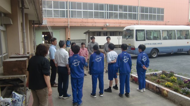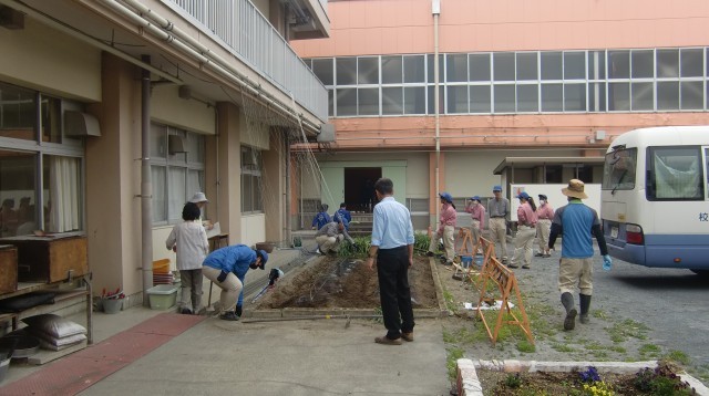 藤岡北高校の生徒が来校し、技術科室前の畑の土を盛り上げて、野菜を育てるための畝を作ってくれました。今後、6・7組の生徒と交流しながら、野菜を作っていきます。本校の卒業生もおり、とても心強いです。