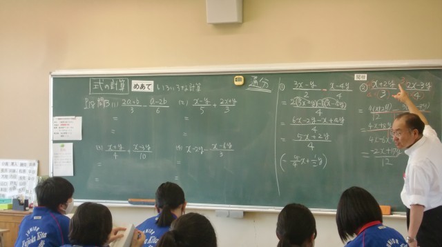 式の計算問題を解いていました。通分する上で、間違えやすいポイントをしっかりと確認していました。
