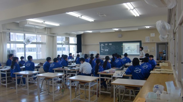 4/30 2年生美術の授業 公開日 2025/04/30 更新日 2025/04/30 できごと 美術作品を鑑賞していました。葛飾北斎の波の絵について、これまで習ってきた美術の造形要素(色、形、構図、対比など)を振り返り、じっくりと鑑賞していました。
