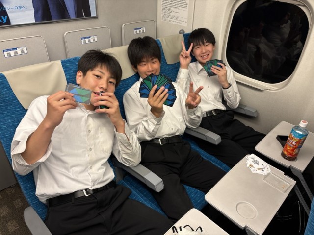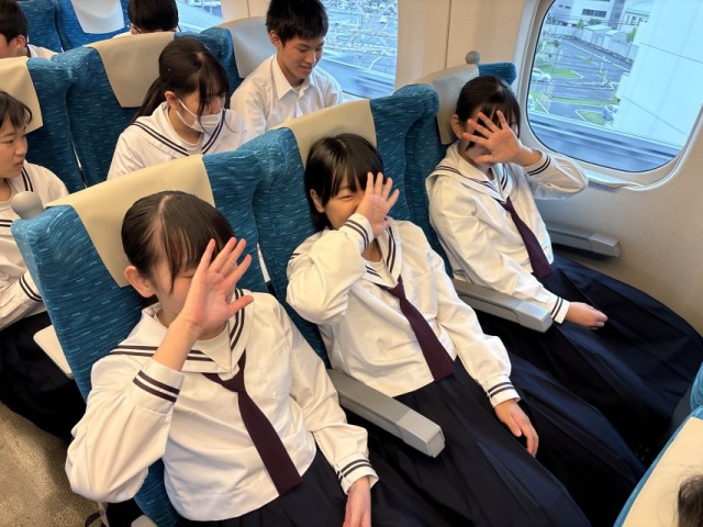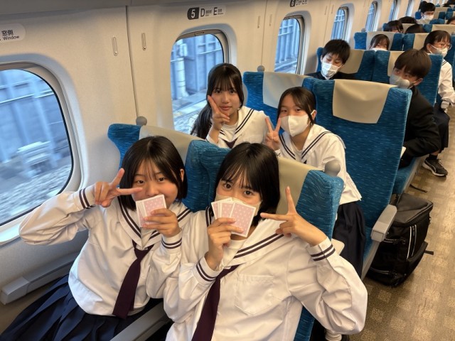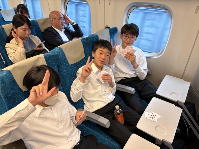 遅ればせながら、1組の様子です。無事に乗り換え、京都に向けて出発!
