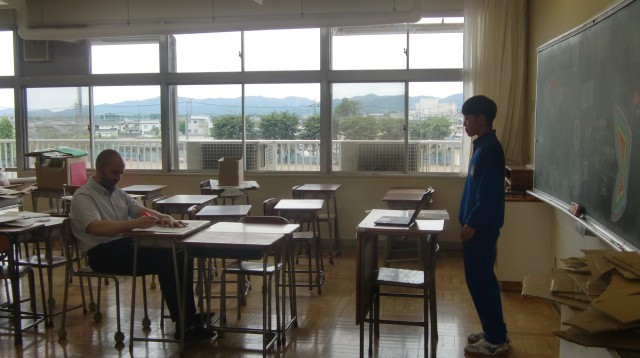 5/26 2年生英語の授業 公開日 2025/05/26 更新日 2025/05/26 できごと 授業が進行している教室とは別の教室を使って、ALTがパフォーマンステストを実施していました。廊下で待っている生徒は緊張している様子でしたが、テストが始まると今まで学習してきた英語表現や話し方に気をつけながら英語で応答していました。