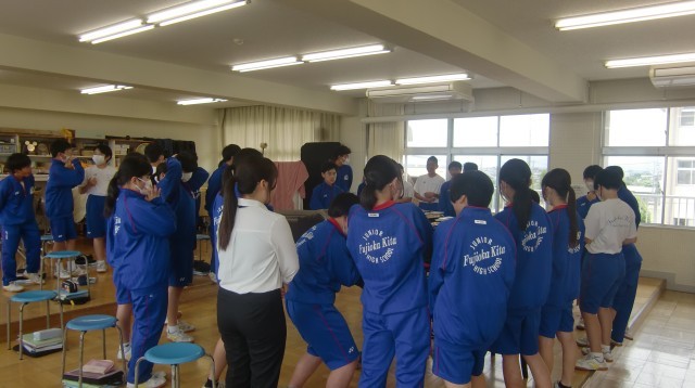 5/27 1年生音楽の授業 公開日 2025/05/27 更新日 2025/05/27 できごと 「栄光の架け橋」の歌唱練習をしていました。先生のアドバイスを受け、顔の表情をほぐしながら、楽しみながら歌っていました。教育実習生も知っている曲なので、懐かしそうにしていました。