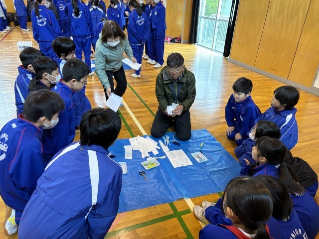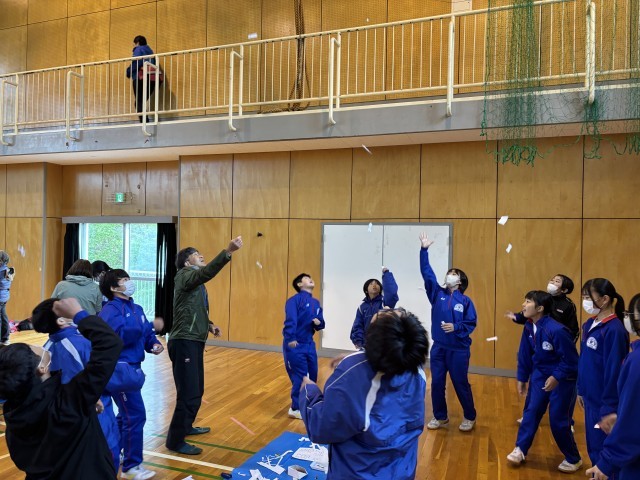 トウカエデやニワウルシの種を模して紙で工作をして飛ばしました。
