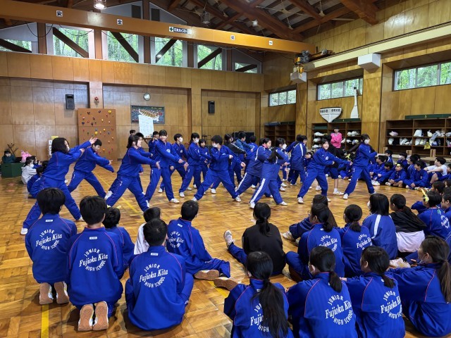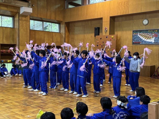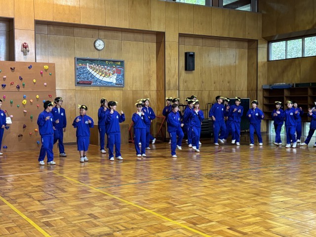 学級の出し物の披露 公開日 2025/05/31 更新日 2025/05/31 1年・高原学校 昨日のキャンプファイヤーで披露できなかった学年の出し物を艇庫で行いました。ダンスや劇など、どのクラスも楽しい発表でとても盛り上がりました。