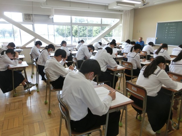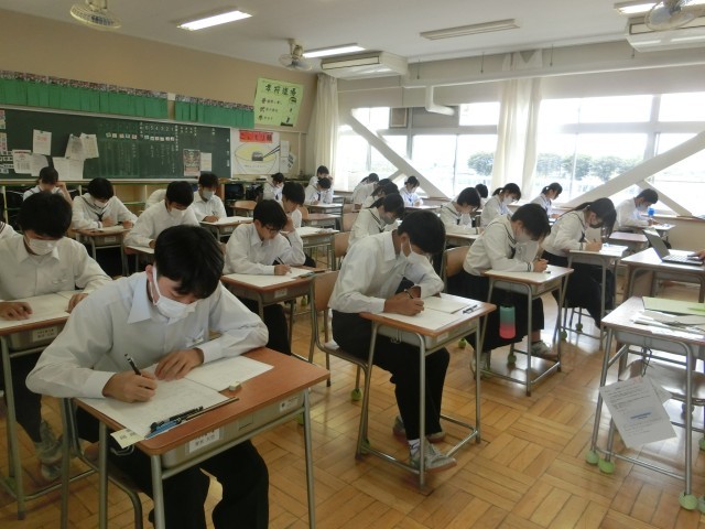 第2回の実力テストです。真剣に取り組む生徒の姿で、どの教室も心地よい緊張感に包まれています。希望の進路を実現するために、目の前のこと1つ1つにしっかりと向き合う生徒たちです。