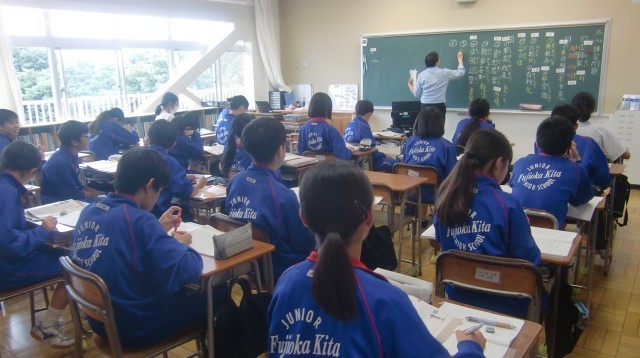 国語は、「喜怒哀楽」「疾風迅雷」など、四字熟語の意味について調べ、全体で答え合わせをしていました。理科は、「植物の細胞のつくり」について学習をしていました。顕微鏡を使って、酢酸カーミン液で核を染めたオオカナダモを観察しました。