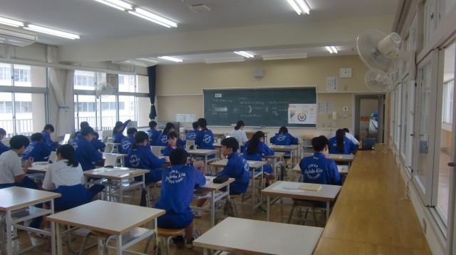 理科は、「植物の細胞のつくりを見てみよう」をめあてとして学習していました。酢酸カーミン液で染めたオオカナダモの細胞を顕微鏡で観察し、ノートにしっかりとまとめていました。また、美術は、鏡で自分の顔を見ながら鉛筆で自画像を描いていました。顔全体を見てはっきりと見えるところや、ひっこんでいる所を意識して陰影を表現していました。