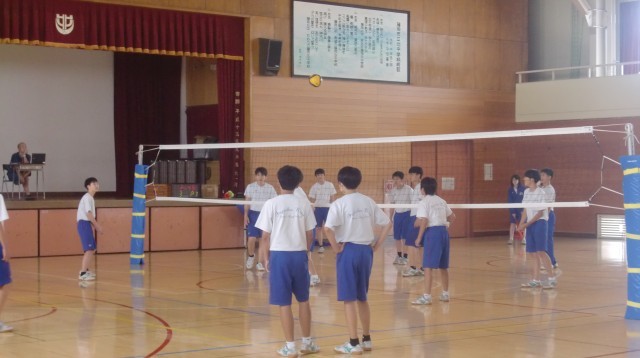 体育は、27日(金)に行われる球技大会に向けてバレーボールの練習をしていました。参観したときは女子は審判を行い、男子がプレーを行っていました。強烈なサーブや3段攻撃が見られました。