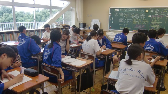 道のり、時間、速さの関係を使って、文章題を解いていました。問題を図式化して、関係式を作り、単位に気を付けながら答えを出していました。少しずつ問題のパターンにも慣れてきました。