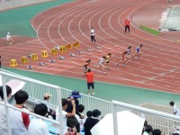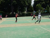 ベースボール型球技の学習です。ティースタンドを使った、簡単なゲームですが大変盛り上がっていました。皆、青空に向かって、気持ちよさそうにボールを打っていました。