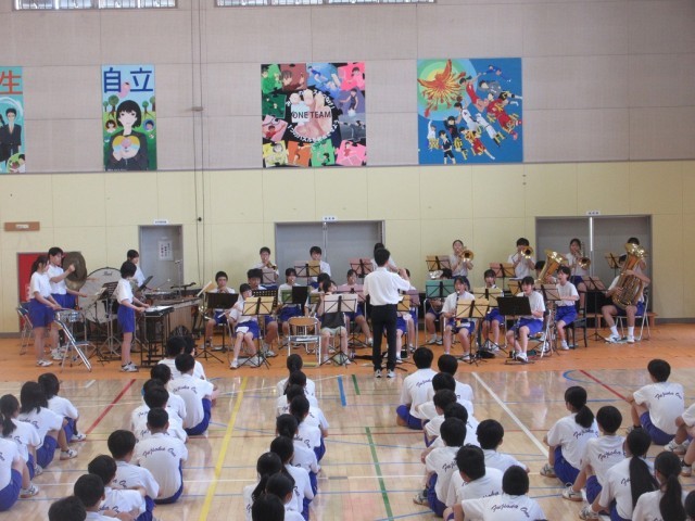 7月18日(金)吹奏楽部壮行会(県吹奏楽コンクールに向けて) 公開日 2025/07/18 更新日 2025/07/18 できごと 吹奏楽部はコンクールで演奏する曲を披露しました。8月3日(日)に高崎音楽センターで開催される県吹奏楽コンクールに出場します。練習の成果を十分に発揮することを期待します。