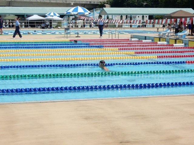 高崎浜川プールを会場に西毛地区中体連新人水泳競技大会が開催されました。これまで、西毛地区と高崎地区が合同で開催していた本大会ですが、敷島県営プール改修のため、今年度は前橋地区、伊勢崎佐波地区、渋川北群馬地区との合同開催となりました。本校から、1年女子1名が出場し、タイムや順位を競い合いました。残暑厳しいなか、練習の成果を発揮し、200m平泳ぎ、200m個人メドレーの2種目で県大会に出場することになりました。おめでとうございます。