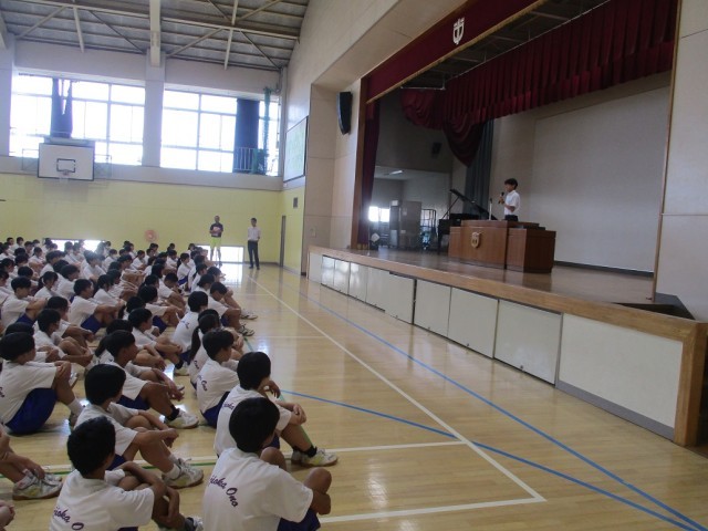 8月29日(金)2学期始業式 公開日 2025/08/29 更新日 2025/08/29 できごと 残暑が心配されましたが、始業時は気温も低めであったので、全校で体育館に集まり、2学期始業式を行いました。2学期のスタートにあたり「協力することで行事や学習を充実させる」「努力の継続を成長につなげる」「命を大切に、安全に留意する」「いじめのない小野中学校」について全校で確認しました。日々の積み重ねを大切にして、生徒一人一人が自分の成長を実感できる2学期にしていきたいと思います。