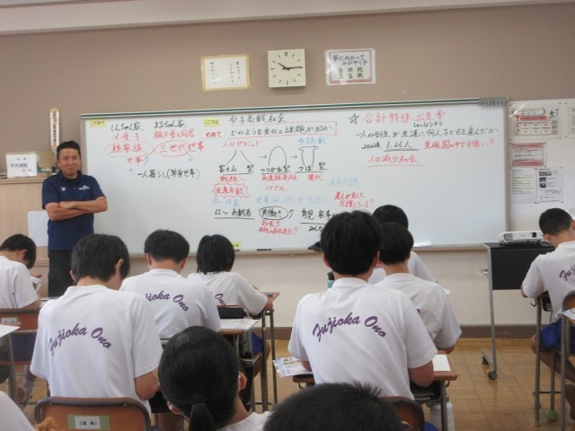 9月1日(月)授業の様子(3年1組 社会) 公開日 2025/09/01 更新日 2025/09/01 できごと 少子高齢化が進む日本の社会には、どのような変化と課題があるか考えました。生徒の多くは、核家族を将来の家族像としてイメージしているようです。夏休み明けですが、集中して学習しています。