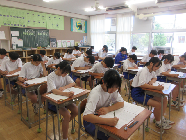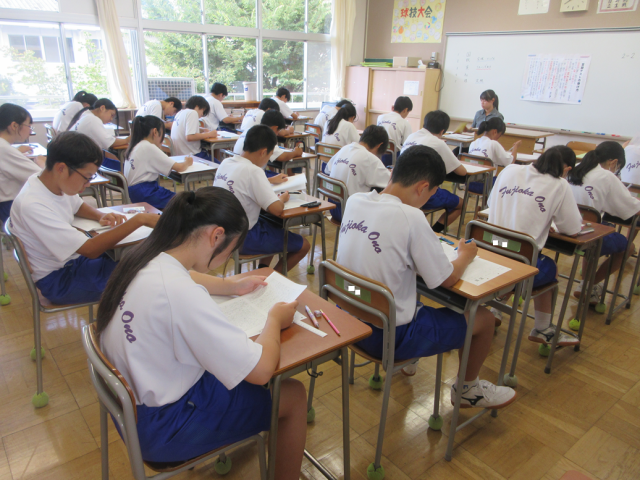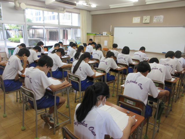 9月3日(水)夏休み明け実力テスト(全学年) 公開日 2025/09/03 更新日 2025/09/03 できごと 全学年で夏休み明け実力テストを行いました。生徒たちは、夏休みに学習したことが成果としてあらわれるよう、一生懸命頑張っていました。(写真:3年1組→1年3組) +6