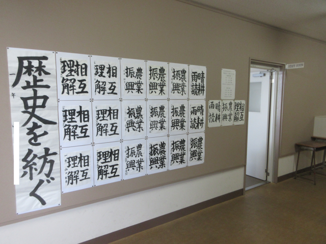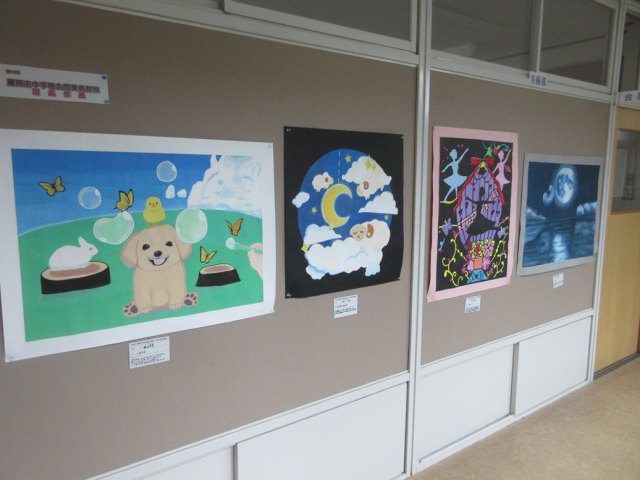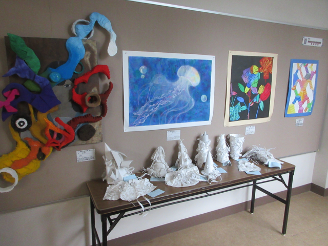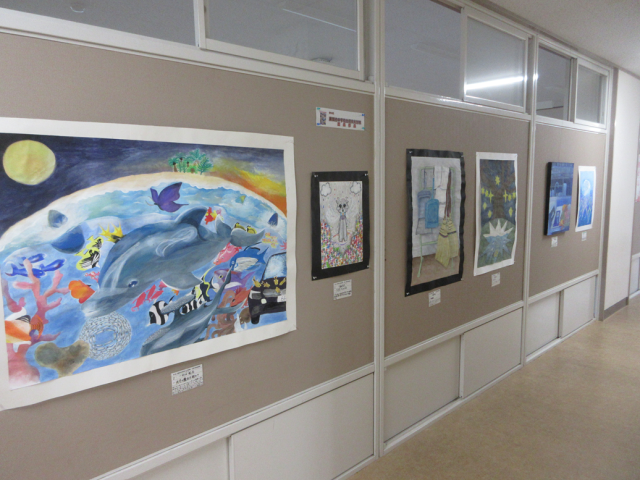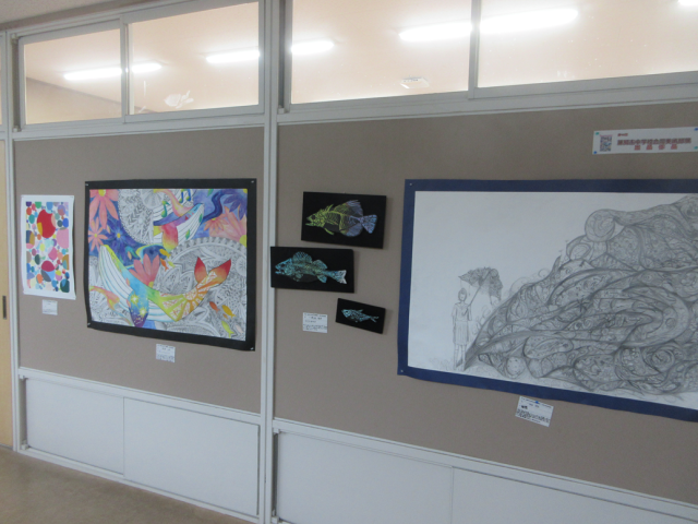 現在、校内には生徒の様々な作品が展示されています。授業や部活で取り組んだ作品、夏休みの課題等、力作ばかりです。8日のオープンスクールに来校された際は、是非、ご覧ください。