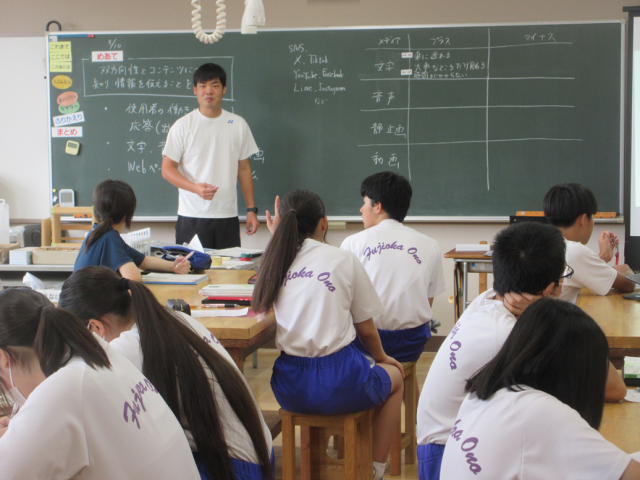 9月10日(水)授業の様子(3年2組 技術科) 公開日 2025/09/10 更新日 2025/09/10 できごと 双方向性のあるコンテンツの、プラス面とマイナス面について考えました。文字、音声、静止画、動画について具体的にメリット、デメリットを書き出し、整理しながらまとめていきました。