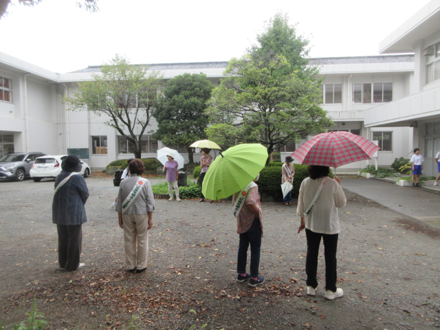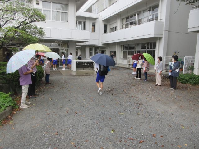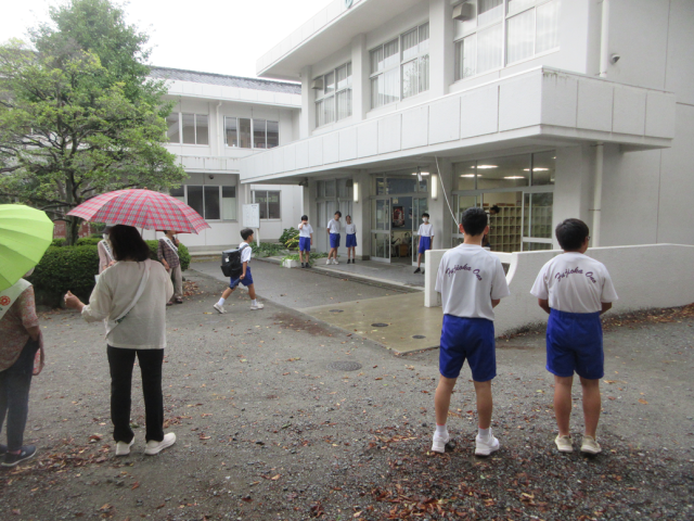 9月11日(木)あいさつ運動(更生保護女性会の皆様) 公開日 2025/09/11 更新日 2025/09/11 できごと 本日、更生保護女性会小野支部の皆様がご来校くださり、生活委員会の生徒達とあいさつ運動を行いました。小雨の降る中、一人一人の生徒に丁寧にご挨拶くださり、生徒たちも気持ちよくあいさつを交わしていました。一日のスタートにふさわしい、温かい雰囲気に包まれていました。