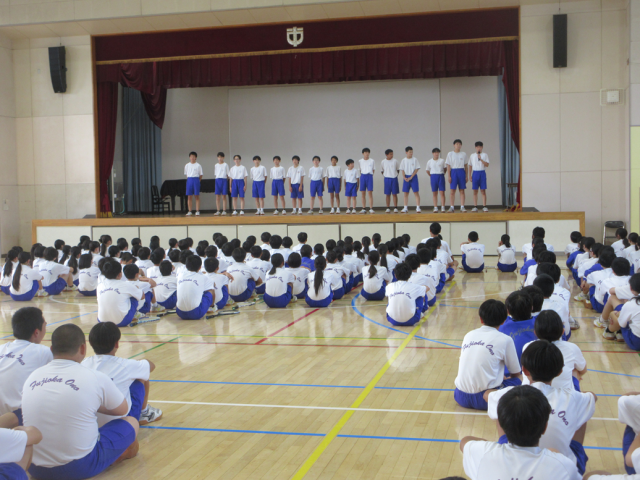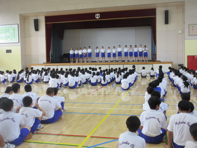 9月16日(火)秋季中体連壮行会 公開日 2025/09/16 更新日 2025/09/16 できごと 今週末から始まる、藤岡多野中体連秋季大会の壮行会が行われました。壮行会では、大会に臨む運動部だけでなく、コンクールや各種大会を控えた文化部からも決意表明や目標の発表がありました。小野中学校が一丸となり、持っている力を発揮するとともに、礼儀やマナーの面でもひとまわり成長した姿を見られることを期待しています。 +1