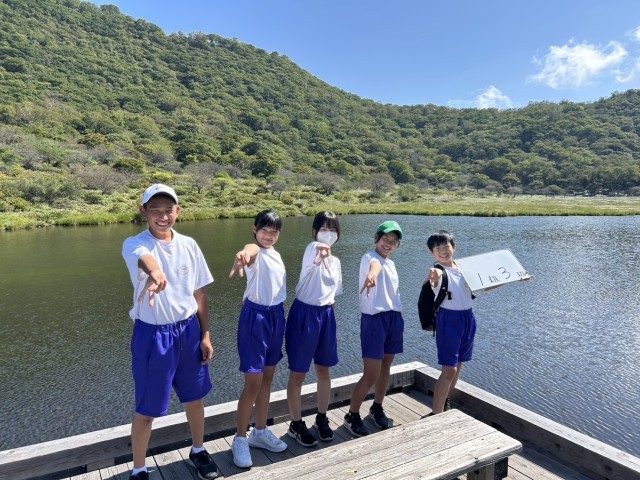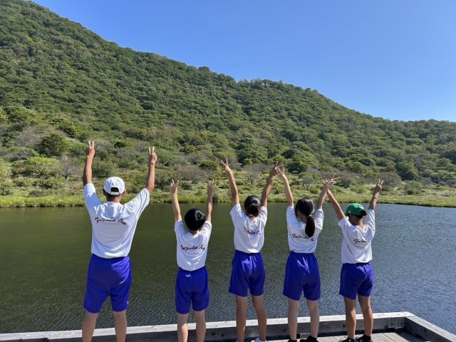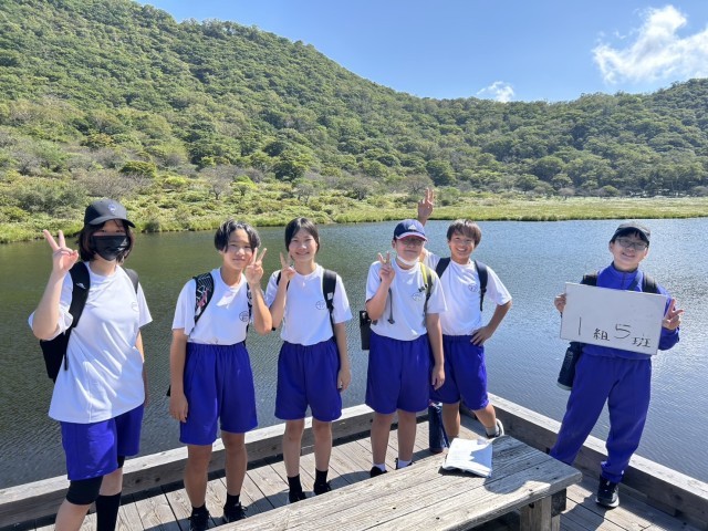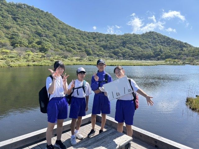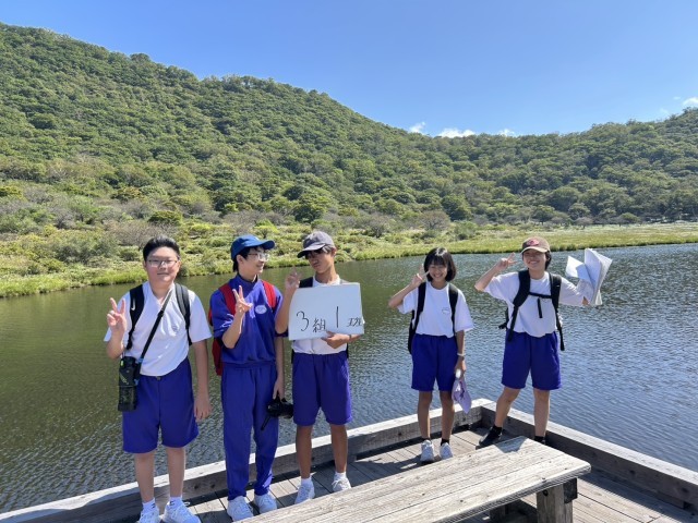 覚満淵チェックポイントです。生徒は自然に囲まれて気持ち良さそうです。