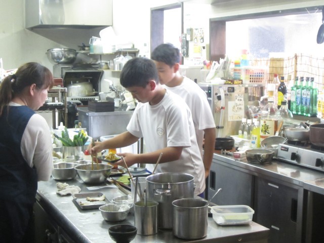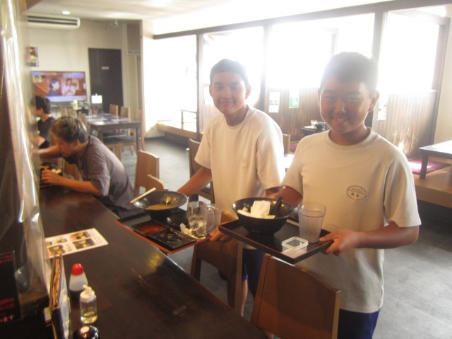 10月6日(月)チャレンジウィーク(翔屋) 公開日 2025/10/06 更新日 2025/10/06 できごと 翔屋の二人です。お客さんから注文を聞いたり、カレーの盛り付けをしたり大忙しでした。ねぎの千切りと味付けをしてくれました。おいしかったです。 +3