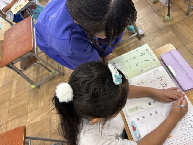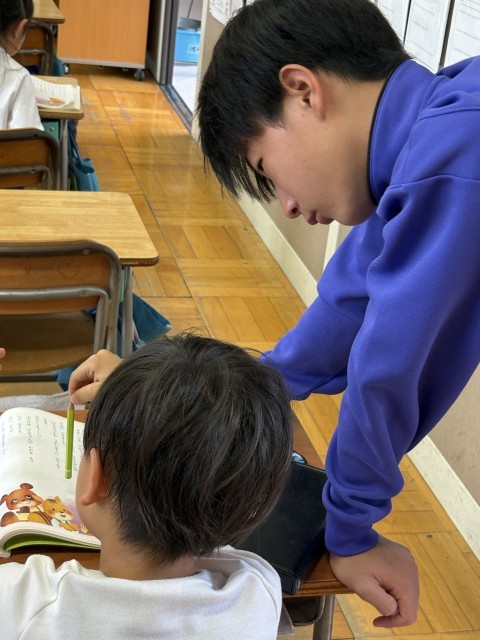 10月7日(火)チャレンジウィーク(小野小学校) 公開日 2025/10/07 更新日 2025/10/07 できごと 小野小学校での様子です。休み時間に一緒に遊んだり、授業ではきれいな字を書くためのサポートをしていました。明日は6年生に向けて小野中の生活を紹介するそうです。