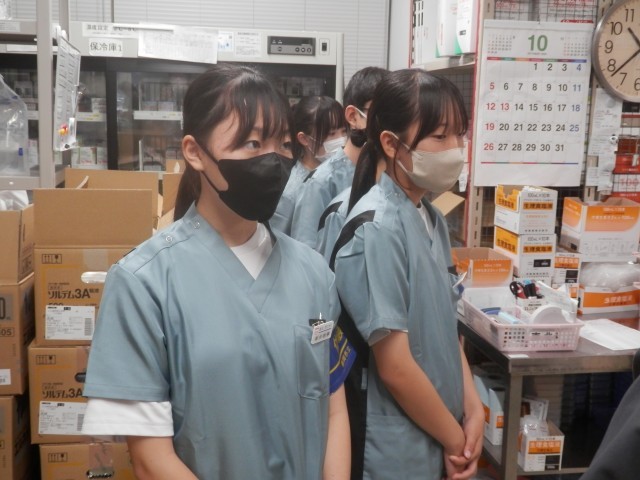 藤岡総合病院です。本日は調剤局で仕事をしています。様々な薬の準備をしています。