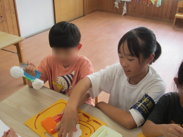10月10日(金)チャレンジウィーク(立石保育園) 公開日 2025/10/10 更新日 2025/10/10 できごと 立石保育園での様子です。粘土遊びやお絵描きをして一緒に遊んでいました。おやつの準備も頑張っていました。