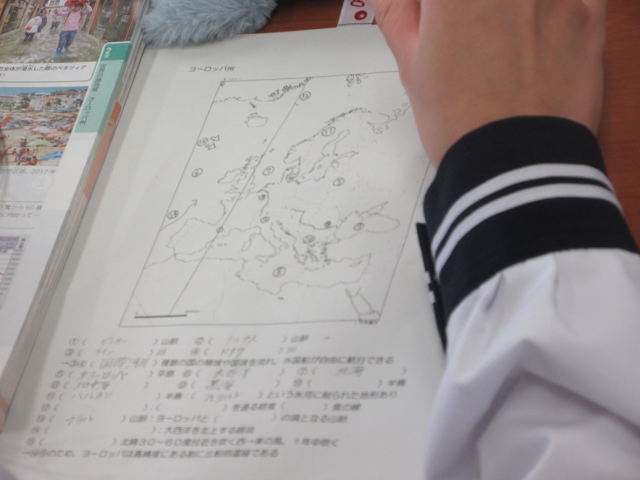 10月14日(火)授業の様子(1年2組 社会) 公開日 2025/10/14 更新日 2025/10/14 できごと ヨーロッパ州の自然環境についての学習です。白地図に地形や気候の特色をまとめていきました。教科書だけでなく、地図帳を活用しながら課題解決を図っています。 +1