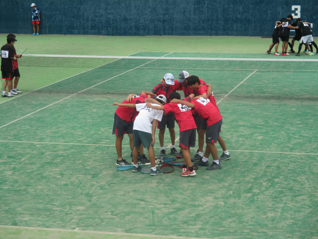男子ソフトテニス団体戦は、前橋市総合運動公園テニスコートで開催されました。本校は2回戦からスタートし桐生市の代表校と対戦しました。仲間と声を掛け合い、集中したプレーで見事勝利しました。準々決勝は、強豪クラブチームと対戦し、接戦の末、惜しくも敗れてしまいました。女子同様、堂々の県ベスト8です。選手の皆さん、お疲れさまでした。今日の結果をばねに、さらなる飛躍を期待します。