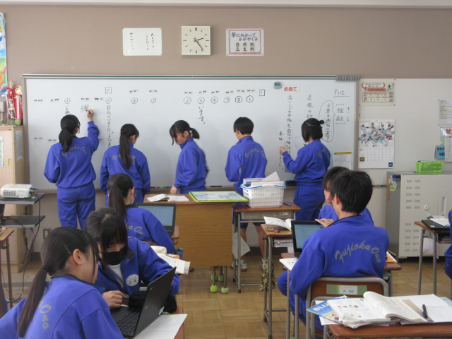 10月30日(木)授業の様子(2年3組 国語) 公開日 2025/10/30 更新日 2025/10/30 できごと 教科書教材である「小学校の恩師に出す手紙の下書き」を参考に文章を推敲しています。自分の考えや思いが相手に伝わる表現になっているかどうか、タブレットPCで調べたり、友達と話し合ったりしながら、適切な表現を考えていきました。様々な表現方法を学級全体で交流することができました。