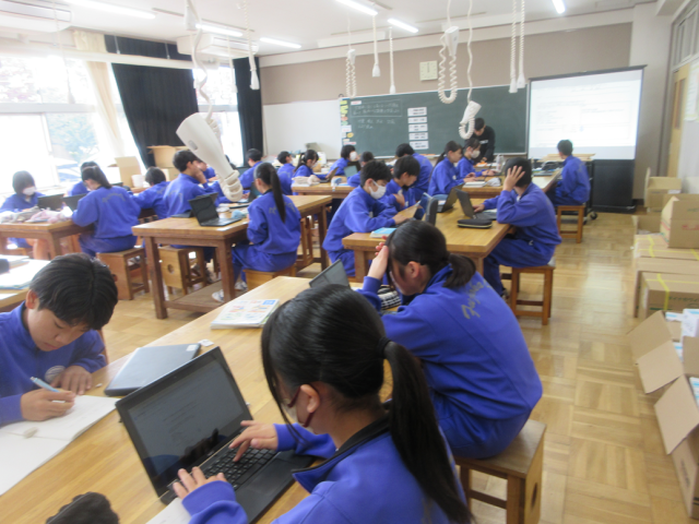 11月6日(木)授業の様子(2年3組 技術) 公開日 2025/11/06 更新日 2025/11/06 できごと 災害時に起こる身の回りの問題について考えました。地震、洪水、台風などの具体的な場面を想定し、起こる問題に対する解決策について、意見を出し合いました。生徒は、エネルギー変換の技術を用いることで、対応できることに気づくことができたようです。この後、エネルギー変換の学習をさらに深めていきます。