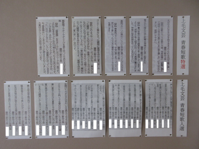 11月7日(金)2年生短歌 公開日 2025/11/07 更新日 2025/11/07 できごと 上毛新聞が募集している「上毛文芸 青春短歌」に2年生の短歌が掲載されました。特選5名、入選26名、どれも10代ならではの感性で、青春の情景が目に浮かぶような短歌です。