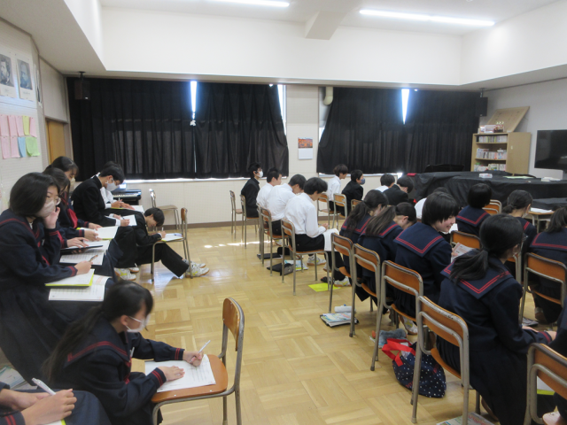 11月10日(月)授業の様子(1年3組 音楽) 公開日 2025/11/10 更新日 2025/11/10 できごと シューベルトの「魔王」について学習しています。登場人物を整理し、心情の変化を想像しました。詩の内容や音楽の特徴に気を付けて、場面の様子を想像しながら、音楽の良さや美しさを感じ取りながら鑑賞を行っています。