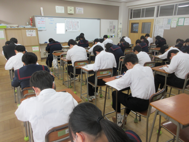 11月18日(火)第6回実力テスト(3年生) 公開日 2025/11/18 更新日 2025/11/18 できごと 3年生は本日、6回実力テストを行いました。三者面談も終わり、三年生にとっては現在の実力を測る大切なテストです。全員が努力の成果を発揮できることを期待しています。写真は、数学のテストの様子です。