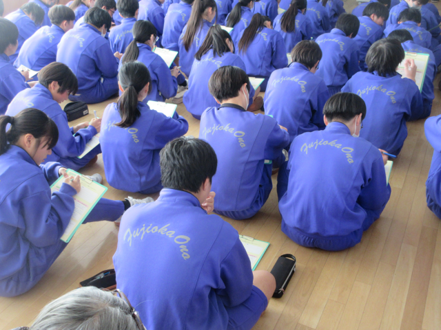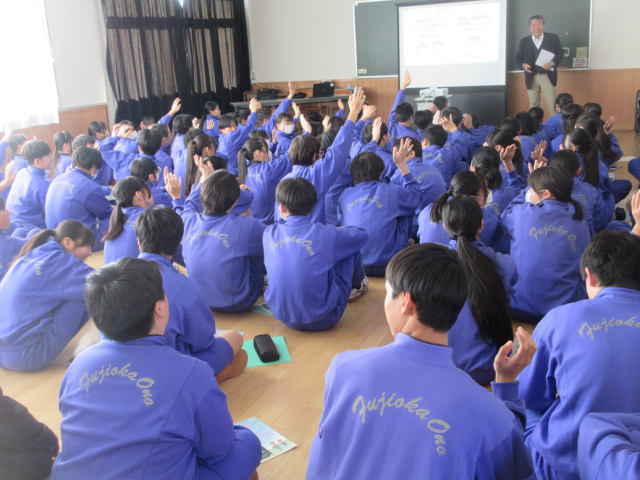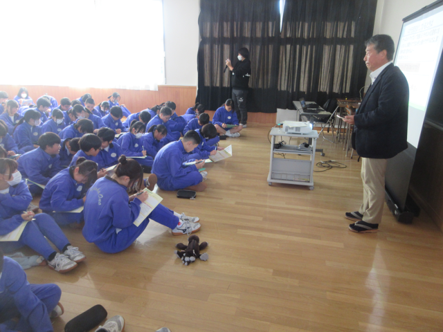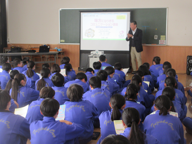 6校時、日本ゲートキーパー協会の方を講師に「味方になるコミュニケーション講座」を開催しました。気持ちが落ち込んでしまった友達への適切な声掛けや、悩んだり落ち込んだりしたときに、お互いがSOSを送りやすい環境づくりについて体験実習を行いました。今後も、みんなで支え合える学級や学校の雰囲気をつくっていけることを願っています。