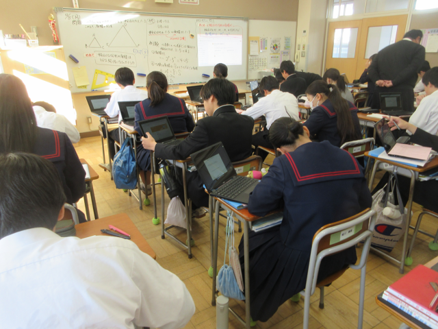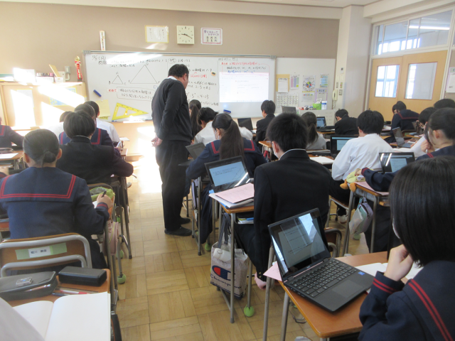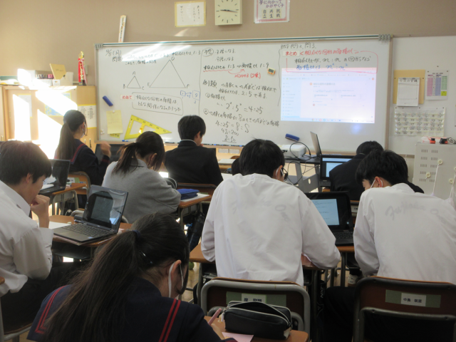 12月8日(月)授業の様子(3年2組 数学) 公開日 2025/12/08 更新日 2025/12/08 できごと 相似比と面積比の関係について学んでいます。多くの生徒は説明が終わると黙々と課題に取り組み、主体的に授業の復習を行っていました。入試に向け、授業にも緊張感が感じられるようになりました。 +1