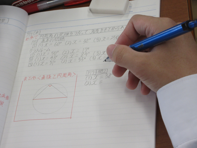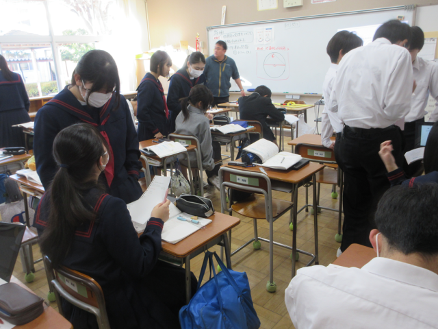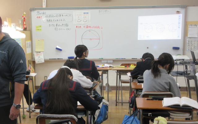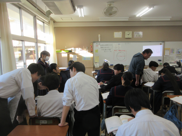 12月17日(水)授業の様子(3年2組 数学) 公開日 2025/12/17 更新日 2025/12/17 できごと 円周角の定理を用いて円にできる図形の角度を求めました。教え合いをしながら理解を深めていました。 +2