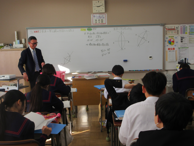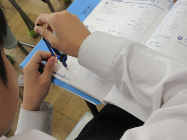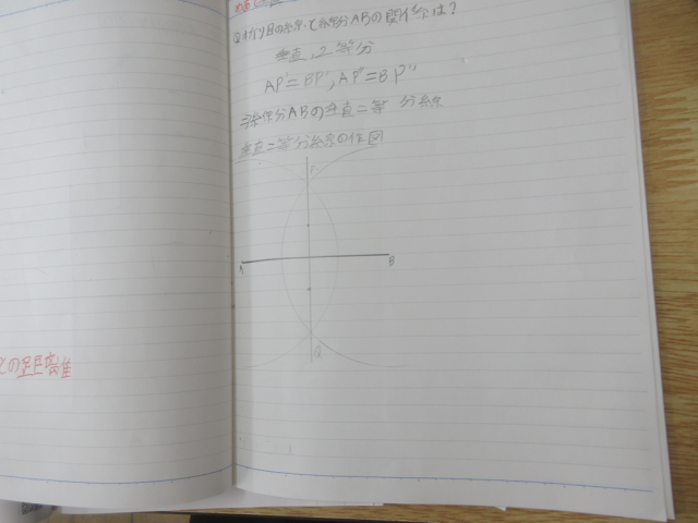 12月17日(水)授業の様子(1年2組 数学) 公開日 2025/12/17 更新日 2025/12/18 できごと 垂直二等分線の引き方について学んでいます。教科書の図形を参考にしながら、垂直二等分線の作図方法について考えました。皆、理解が早く、すぐにきれいな垂直二等分線を作図できるようになりました。