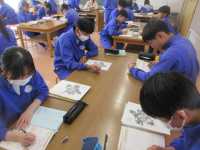 12月17日(水)授業の様子(1年3組 技術科) 公開日 2025/12/17 更新日 2025/12/18 できごと 木工製作が進んでいます。生徒はそれぞれのペースで作業を進めています。木材にけがきしている人、切断している人、切断面にヤスリをかけて滑らかしている人など様々ですが、着実に完成に近づいています。 +2