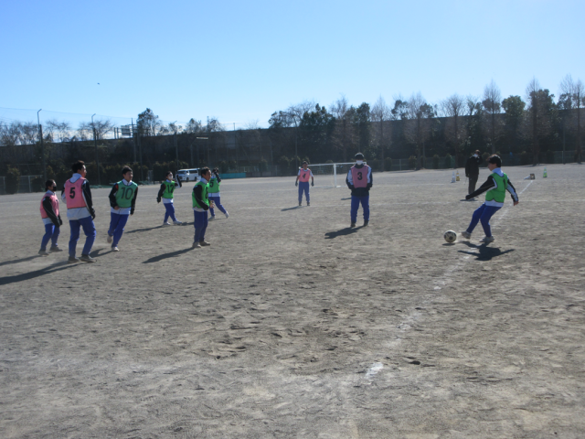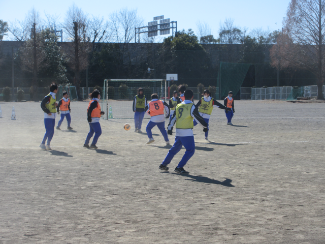 1月21日(水)授業の様子(2年3組 体育) 公開日 2026/01/21 更新日 2026/01/21 できごと 2年3組はサッカーの授業です。ゴール前で数的有利になるよう、オフェンスの動きを考えながら練習やゲームを行いました。風が強い校庭でしたが、男女混合で声を掛け合いながらボールを追っていました。 +1